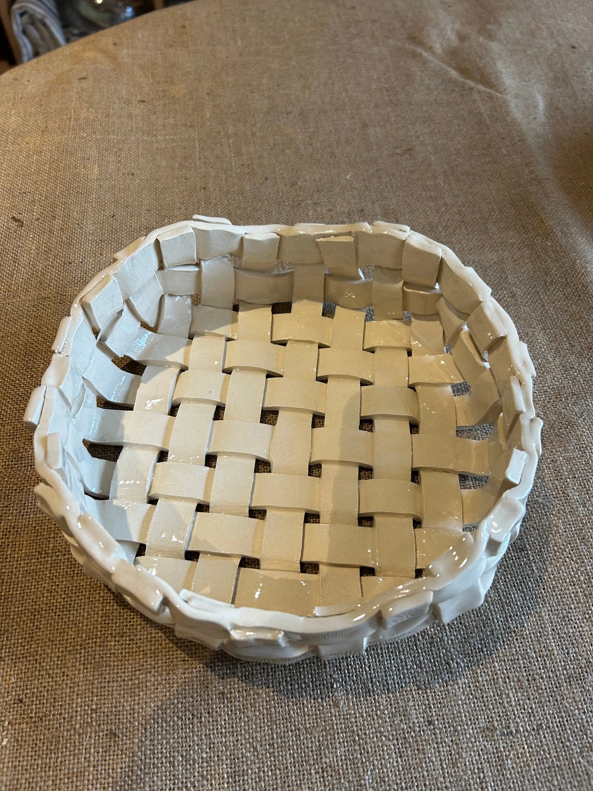 Coupe canevas , en grès blanc lisse et émaillée en blanc transparent.