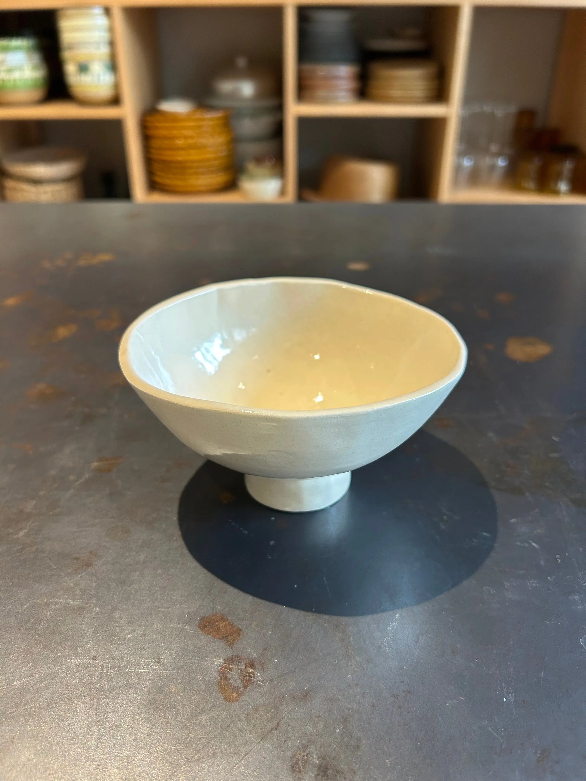 Coupelle sur pied , parfait pour un apéritif, e, grès blanc lisse , émaillé blanc transparent.