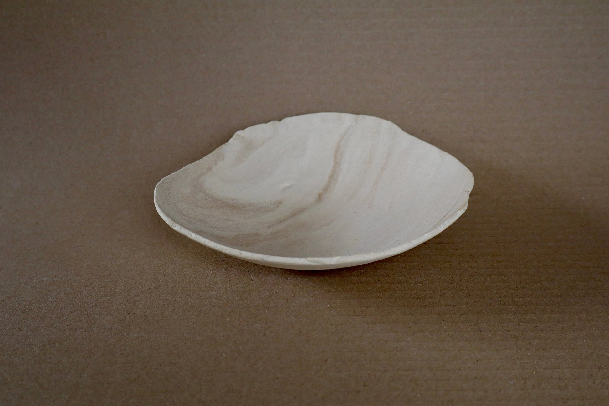 Je vous propose cette coupelle en terre mélée, grès rouge chamotté et grès blanc lisse. Technique du modelage à l'estampage.
