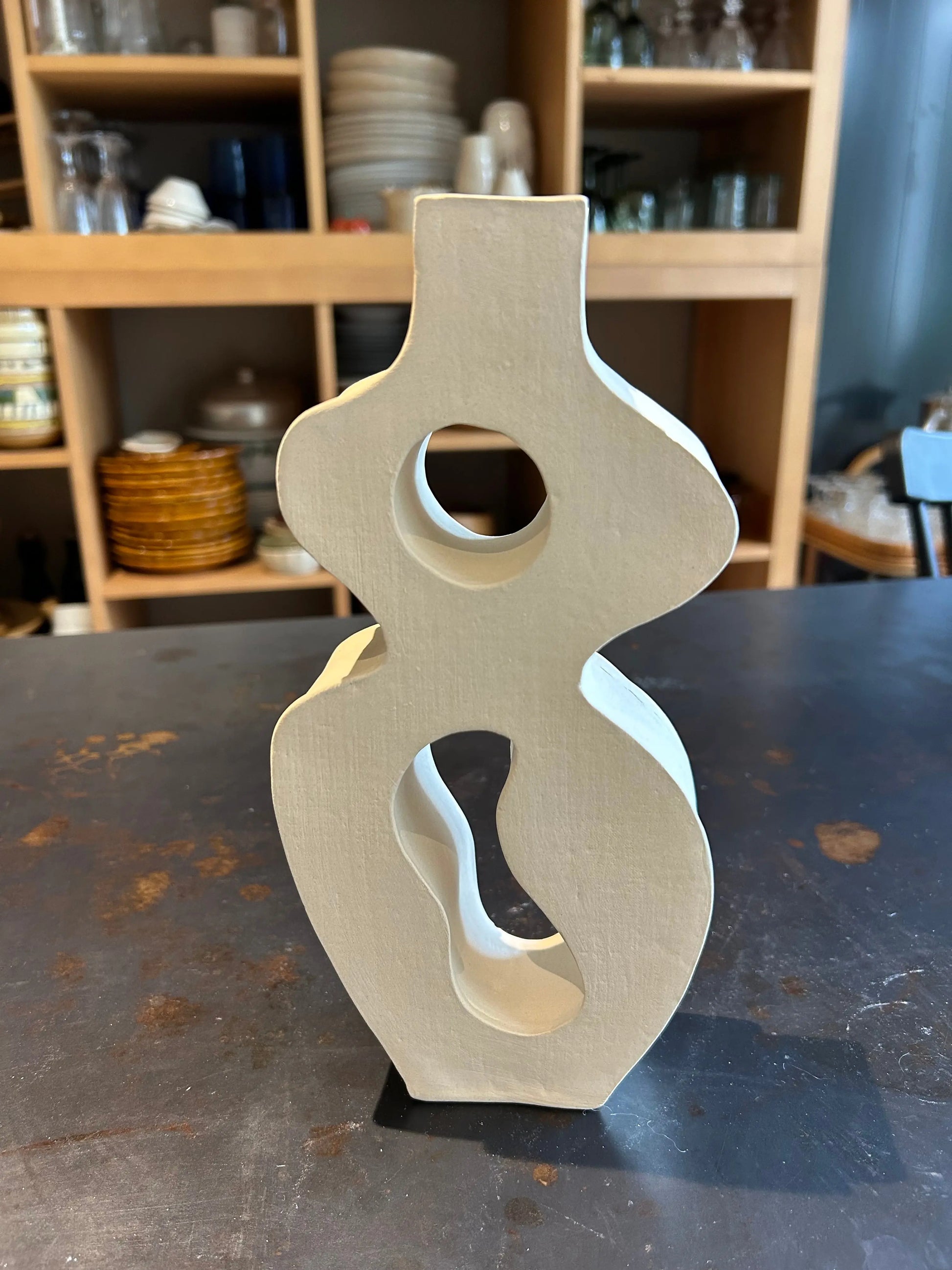 Vase à la forme abstraite, en grès lisse , émaillé à l'intérieur en blanc transparent.